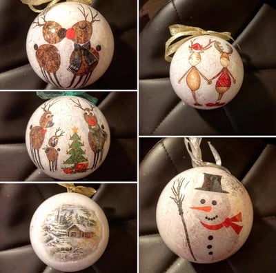 Išskirtiniai rankų darbo žaisliukai, papuošiantys Jūsų Kalėdų eglutę.